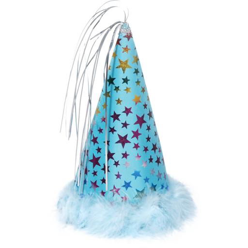 Charming Party Hat Blue Small Charming's Party Hats are the perfect pet topper for parties. These hats feature stars, a soft feathery trim, and sil...