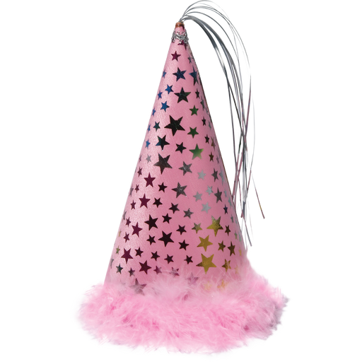 Charming Party Hat Pink Small Charming's Party Hats are the perfect pet topper for parties. These hats feature stars, a soft feathery trim, and sil...