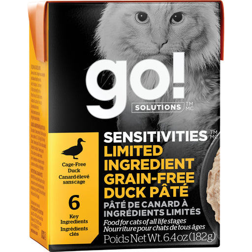 $4.29GO! Sensitivities LID Grain Free Duck Pate Cat 6.4oz For cats who “shouldn’t eat this and can’t eat that”. GO! SENSITIVITIES recipes were created f...