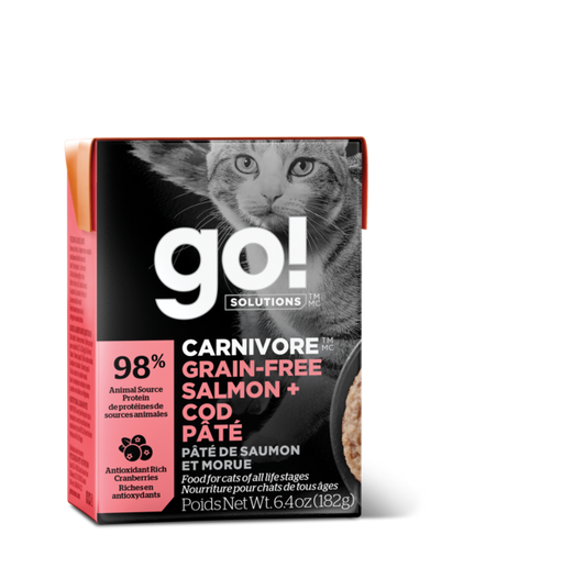 $4.29GO! SOLUTIONS CARNIVORE GRAIN FREE SALMON + COD PÂTÉ Packed with drool-worthy animal proteins for your furry little carnivore. This grain-free, p...