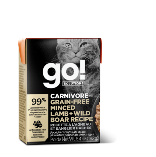 $4.29GO! SOLUTIONS CARNIVORE GRAIN FREE MINCED LAMB + WILD BOAR RECIPE Packed with drool-worthy animal proteins for your furry little carnivore. This ...