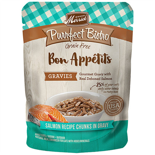 $2.89Merrick Bon Appetites Gravies Salmon 3oz Merrick is expanding its popular cat portfolio with Merrick Purrfect Bistro Grain Free Bon Appétits, a n...