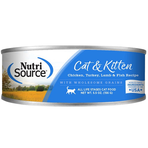 $2.99Nutrisource Cat & Kitten Ckn/Tky/Lamb/Fish 5.5oz NutriSource® canned pet foods feature meat rich, protein dense recipes. Our exclusive Good 4...