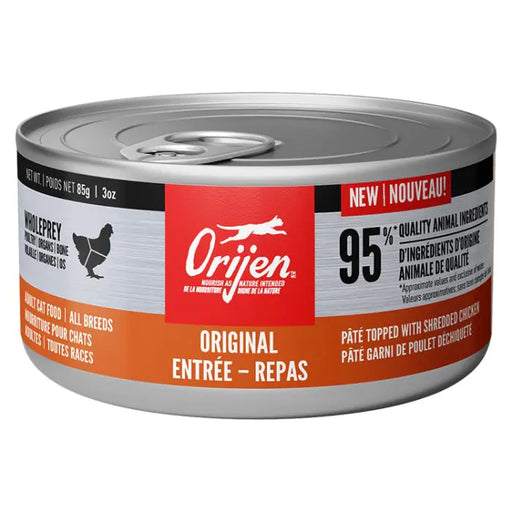 $2.89Orijen Canned Cat Original Entrée 3oz The first 8 ingredients in this diet are raw chicken, chicken liver, whole mackerel, chicken bone broth, fis...