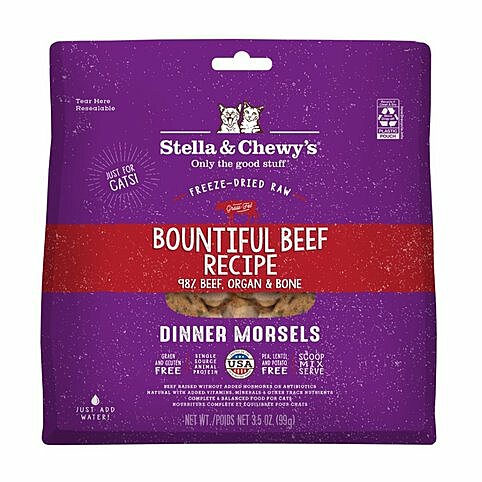 $14.49Stella & Chewys Freeze Cat Bountiful Beef Morsels 3.5oz Appropriate levels of vitamins, minerals, and other nutrients with added taurine. Sma...