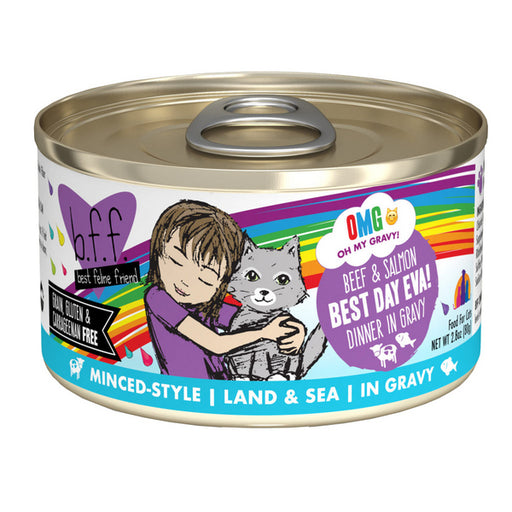 $3.49BFF OMG Best Day Eva Beef & Salmon 5.5 oz Oh My Gravy! (OMG!). Featuring all-gravy recipes focusing on hydration and high quality protein from...
