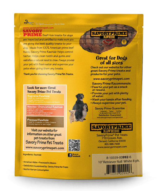 $34.99SAVORY PRIME 9-10″ Supreme Retriever Rolls 8 Pack 19-21" Supreme Knotted Bone White Our American Rawhide chews come in a wide assortment of shap...