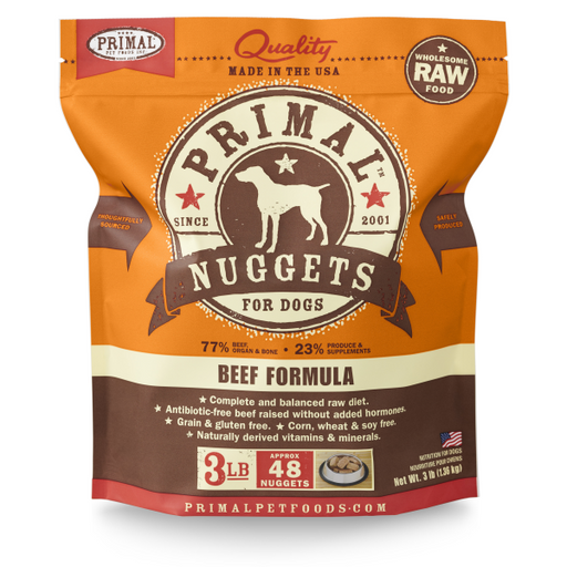 $29.99Primal Dog Raw Beef Nuggets 3 lb Primal Formulas offer you the convenience and benefits of a well-balanced, safe and wholesome raw-food diet withou...