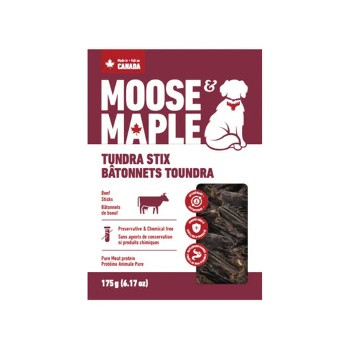 $16.99Moose & Maple Tundra Stix Beef 175g The Moose & Maple Tundra Stix Beef Sticks Dog Treats are savory, maplewood smoked beef sticks that make...
