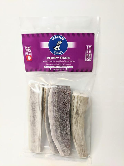 $24.99EZ Antler Puppy Pack 4pk Package of 4 elk antler chews Nutritious, long-lasting, chew option for dogs under 15 lbs Length of each antler is bet...