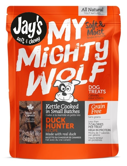 $9.99 to $17.99Size Options AvailableJay's Mighty Wolf Duck Dog Treat My Mighty Wolf Duck Hunter Dog Treats are made with real duck and are completely grain-free. These soft, moist tre...