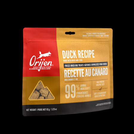 $17.49Orijen Freeze Dried Treat Duck 92g Treat your dog to delicious and nutritious ORIJEN® Freeze-Dried Treats. Packed with animal protein, our Duck Re...