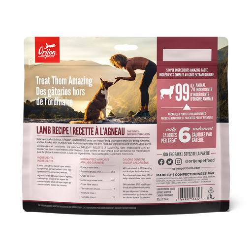 $17.49Orijen Freeze Dried Treat Lamb 92g ORIJEN Freeze-Dried Treats are crafted with the same quality ingredients that make up our trusted foods. Featuri...