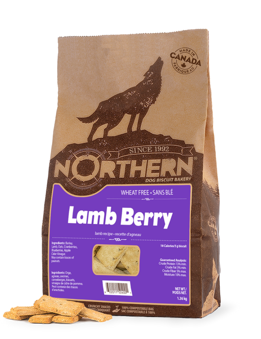 now only $24.99Northern Dog Biscuits WF Lamb Berry 1.36 KG (3 lbs) A free roaming, fresh, exotic protein from the grassy hills of New Zealand makes this best sell...