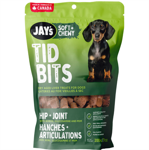 $9.99Jay's Tid Bits Hip & Joint Peanut Butter 200g Jay's Peanut Butter Tid Bits Hip & Joint Dog Treats are kettle cooked, simmered, and dry aged...