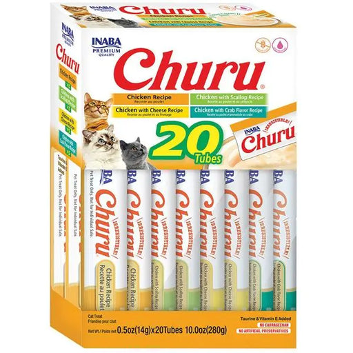 $21.99Churu Puree Chicken Variety Box 20pk These lickable treats for cats are made with real, deep sea tuna or farm-raised chicken! Available in nine d...