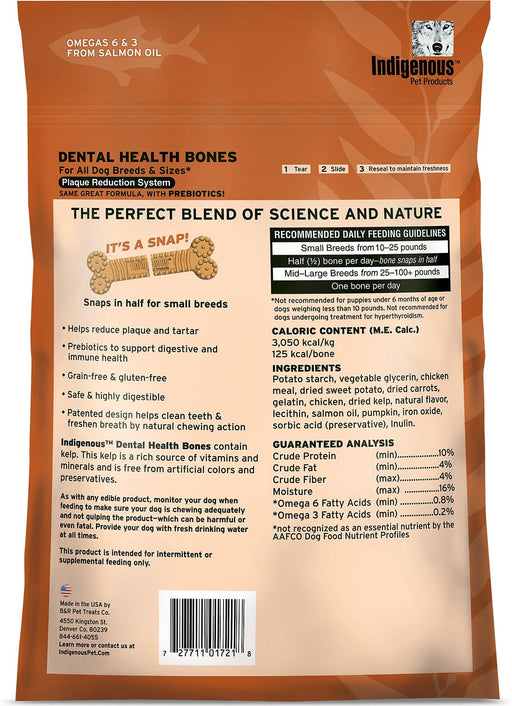 Indigenous Dental Health Bones Formulas The patented design of Indigenous™ Dental Health Bones helps clean teeth and freshen breath, while fighting...