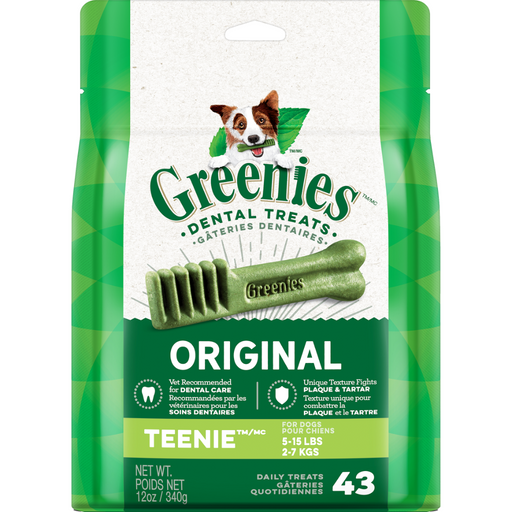 $21.99Greenies Dental Treat 43/Teenie 12oz One GREENIES™ Original Dental Treat a day is all it takes for clean teeth, fresh breath and a happy dog. Your ...