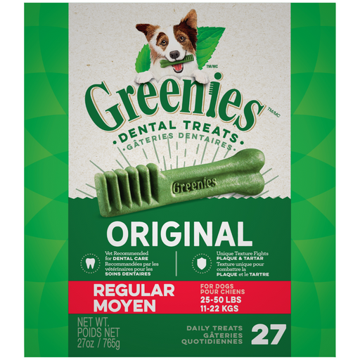 $45.99Greenies Dental Treat Regular 27oz, 27 One GREENIES™ Original Dental Treat a day is all it takes for clean teeth, fresh breath and a happy dog. You...