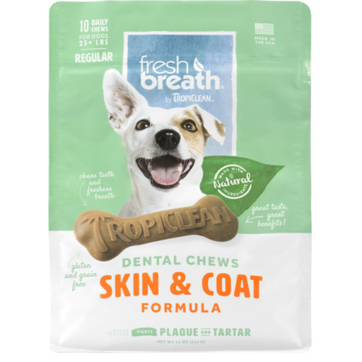$19.99Fresh Breath Dental Chews Skin & Coat 11oz Treat your dog to a healthy mouth and snuggly coat with Fresh Breath by TropiClean Skin & Coat D...
