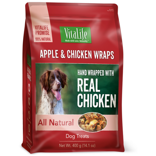 $24.99VitaLife Dog Apple & Chicken Wraps 400g Feed your much-loved furry friends with all-natural, premium, healthy and delicious dog treats that tas...
