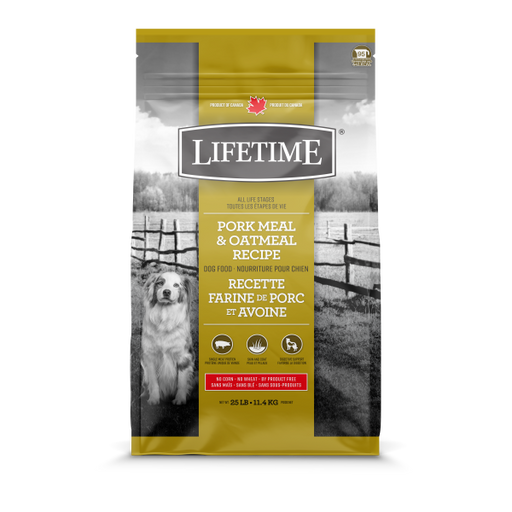 $54.99Lifetime Dog ALS Pork & Oatmeal 11.4 kg Canadian Brand. An alternative single protein diet, Lifetime's Pork Meal & Oatmeal recipe is great...