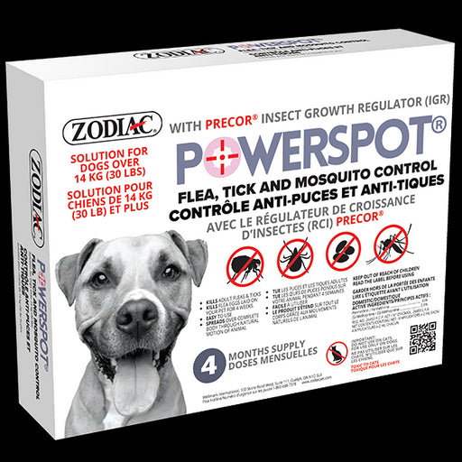 $23.99Zodiac Powerspot OVER 30kg Zodiac Dog Powerspot Over 30 lb contains a powerful, effective insecticide which kills adult fleas and ticks on contact...