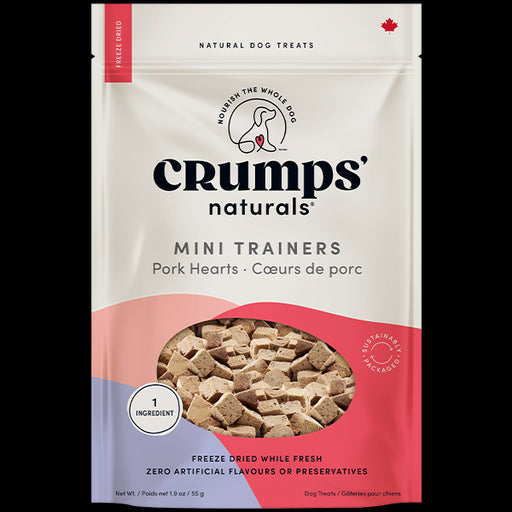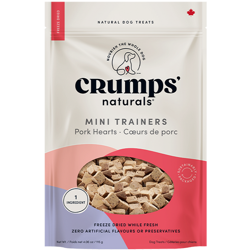 $19.99Crumps Pork Hearts Mini Trainers 4.6oz Canadian Brand. Fuel your dog's training sessions with 1/4 inch of pure protein. These single ingredient, N...