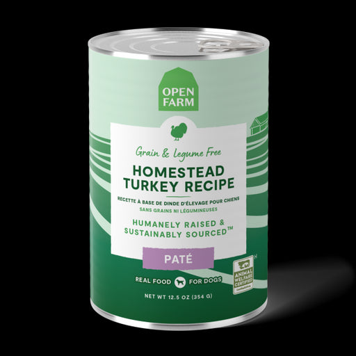 $4.99Open Farm Grain Free Dog Homestead Turkey 12.5oz This complete and balanced paté recipe features G.A.P. certified, humanely raised turkey as the f...