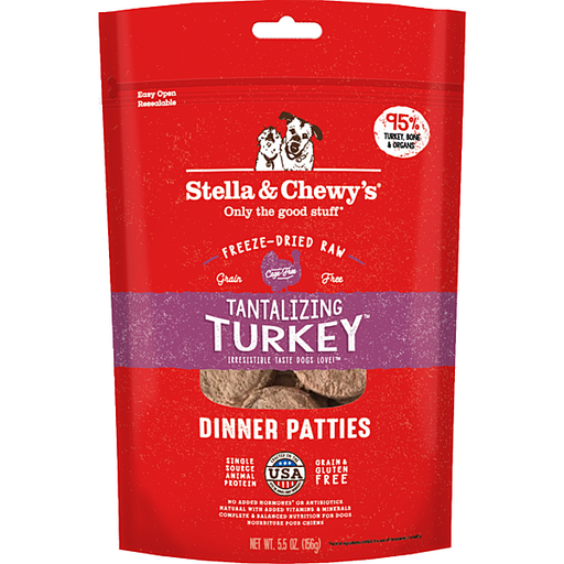 $21.99Stella & Chewy's Freeze Dried Tantalizing Turkey Patties Dinner 5.5oz These Tantalizing Turkey freeze-dried patties are formulated to mirror ...