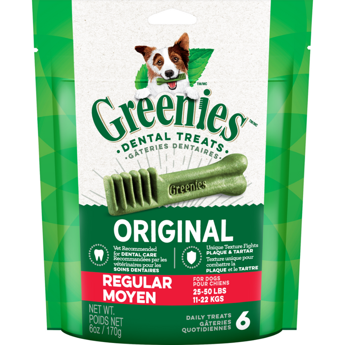 One GREENIES™ Original Dental Treat a day is all it takes for clean teeth, fresh breath and a happy dog. Your dog can't wait to sink their teeth into these delicious, original-flavor dental dog chews because they feature a delightfully chewy texture that fights plaque and tartar. Irresistibly tasty and incredibly powerful, GREENIES™ Treats for Dogs are recommended by veterinarians for at-home oral care. Best of all, these natural dog treats are made with highly soluble ingredients that are easy to digest.