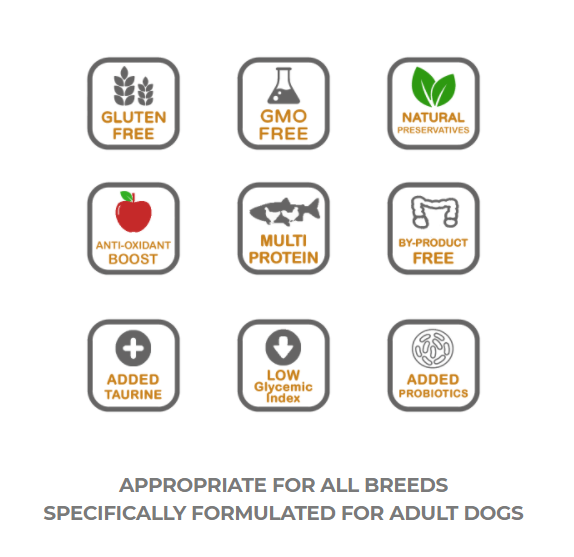 This potato free formula is packed with a generous amount of beneficial proteins including salmon, chicken and turkey, fresh fruits and raw vegetables, unique and effective botanicals, powerful antioxidants and immune system enhancers - all the benefits of a raw diet (the history part) in a power-packed kibble (the innovation).