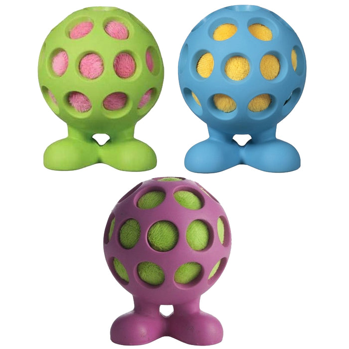 Our JW Pet Hol-ee Cuz Squeaky Dog toy is great for toss and fetch games Great for toss & fetch games CUZ it has holes for a good grip for your pooch. This long-lasting dog toy is fashioned of thick-walled heavy duty rubber and finished with a long-winded squeaker. Your dog will have hours of fun playing by his or herself or enjoying interactive games with you. The soft plush inside this fun dog toy hides the squeaker to keep your dog interested in playtime.