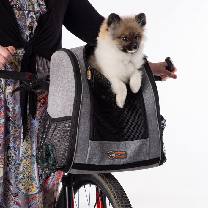Bicycle travel with your pet has never been easier than with the K&H Travel Bike Backpack. Great for teacup and small dogs, simply carry your pet in the comfortable backpack and when you’re ready to ride it quickly and easily attaches to the included K&H bicycle mount. Comes with convenient mesh pockets on both sides for storing a water bottle, leash or other items. A mesh zipper window on the front provides airflow and allows your pet to look out. One year limited warranty