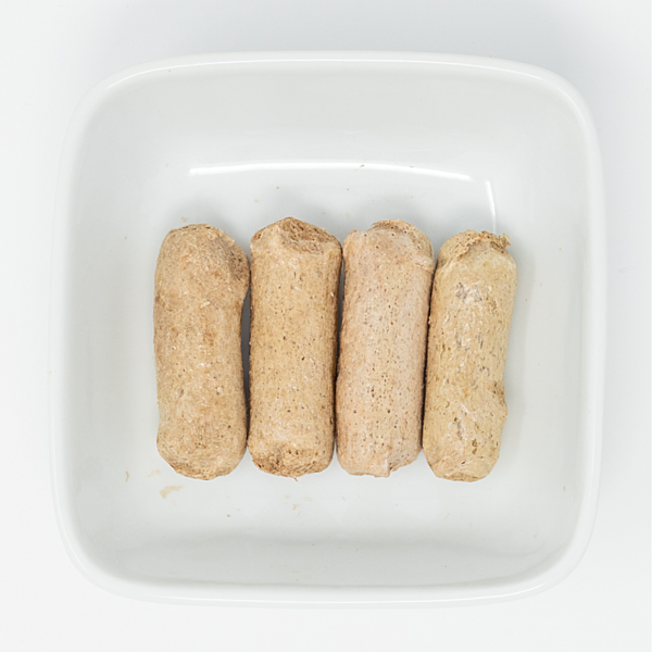Duck, turkey liver, sodium alginate, tocopherols (preservative).